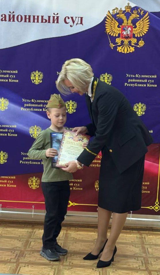 20 мая 2025 года в торжественной обстановке и.о. председателя Усть-Куломского районного суда РК Мартынюк Т.В. вручены дипломы и памятные подарки детям – победителям, призерам, номинантам конкурса творческих работ, посвященных празднованию 80-ой годовщины Победы в Великой Отечественной Войне 1941-1945 годов. Среди участников до 8 лет награжден Пуртов Михаил, 6 лет; в возрасте 9-12 лет награждены Чувьюров Матвей, 10 лет, Ладанова Екатерина, 16 лет; среди участников 13-17 лет - Пуртова Варвара, 13 лет. Татьяна Викторовна поблагодарила детей и их родителей за активную жизненную позицию, творчество и смелость, проявленный патриотизм, пожелав творческих успехов. Так же Татьяна Викторовна передала коллективу суда слова благодарности Председателя Верховного суда Республики Коми Хамицевича Александра Константиновича за патриотизм, проявленный во время подготовки к празднованию юбилея Победы, и в дни торжества, участие в благотворительных акциях. Пусть праздник Победы и впредь служит нашему единению и сплочению, придаст новые силы в укреплении могущества России. ![]() ![]() |